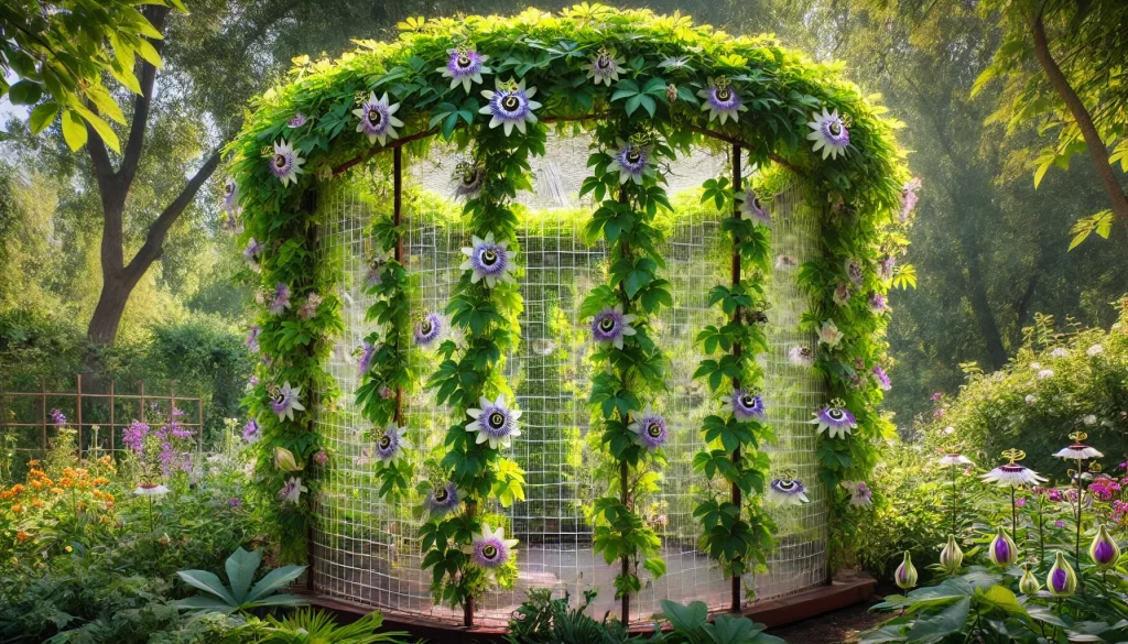 - トケイソウはツルを伸ばして成長するため、しっかりとした支柱とネットが必要です。支柱は1.8m以上の高さが望ましいです。
